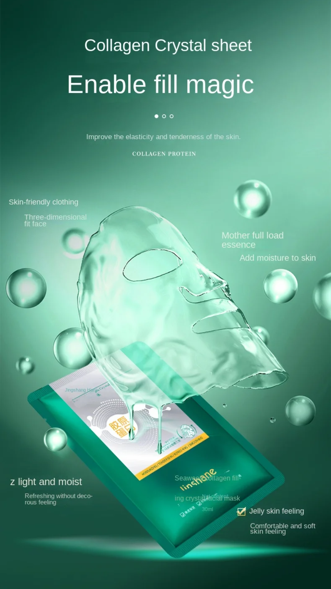 - Die Gel-Maske wird während der Anwendung von der Haut absorbiert und absorbiert keine Feuchtigkeit zurück; die Maske wird dünner, je mehr sie aufgetragen wird.